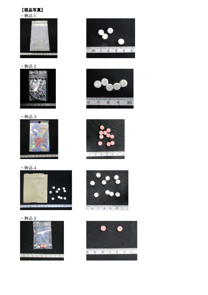 *東京都保険医療局提供の現品写真と一致していない別商品(4-OH DET、4-OH-MET)が